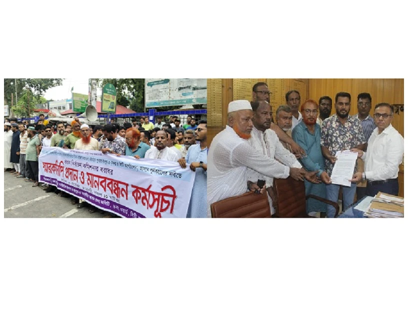 রংপুর সিটি কর্পোরেশনের ৯নং ওয়ার্ডকে বিমাতাসুলভ আচরণ করে রংপুর সদর-৩ সংসদীয় আসনের ভোটার থেকে অবৈধভাবে স্থানান্তর করে গঙ্গাচড়া-১ আসনের ভোটার হিসেবে অন্তর্ভুক্ত করার প্রতিবাদে মানববন্ধন কর্মসূচি পালন করেছে ৯নং ওয়ার্ডবাসী।
