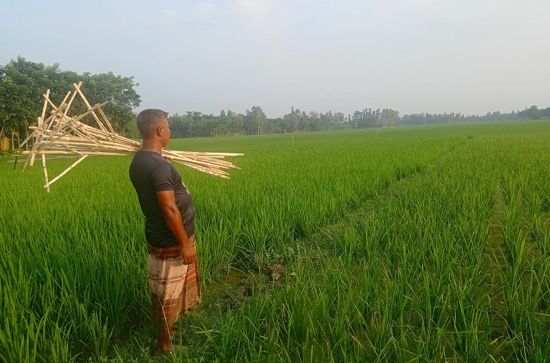 জাহাঙ্গীরাবাদ টু কদমতলি এলাকার প্রায় ৩ কিলোমিটার রাস্তার পাশে ধান খেতে প্রতিবছর নিজের অর্থ ব্যায় করে নিরবে পার্চিং তৈরি করে মানুষের আবাদি ধানের জমিতে পুতিয়ে রাখছেন।