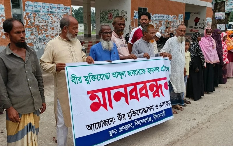 প্রসঙ্গত, বীর মুক্তিযোদ্ধা আব্দুর জব্বারের ওপর হামলার ঘটনায় উপজেলার মুক্তিযোদ্ধাবৃন্দ ও তার পরিবারের সদস্যরা সুষ্ঠু বিচার ও আসামীদের গ্রেপ্তারের দাবিতে রোববার সকালে প্রেস ক্লাবের সামনে মানববন্ধন করেছেন।