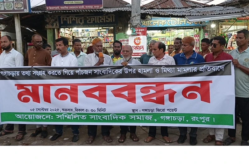 গঙ্গাচড়ায় সাংবাদিকদের ওপর হামলার প্রতিবাদে মানববন্ধন: ওসিকে ৭২ ঘণ্টার মধ্যে অপসারণের দাবি