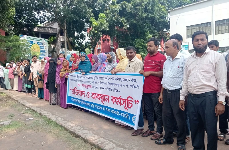 মিঠাপুকুরে স্বাস্থ্য কর্মকর্তার পদায়ন বাতিলের দাবিতে মানববন্ধন ও অবস্থান কর্মসূচী