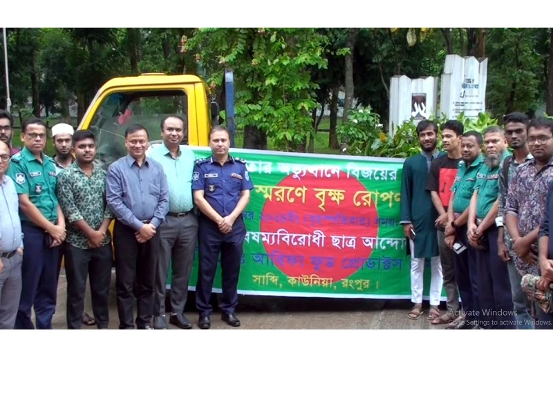 ছাত্রজনতার অভ্যুত্থানে বিজয়ের একমাস উপলক্ষে রংপুর মেডিকেল কলেজ প্রাঙ্গনে বৃক্ষরোপন কর্মসুচী অনুষ্ঠিত হয়েছে। গতকাল বৃহস্পতিবার দুপুরে বৈষম্যবিরোধী ছাত্র আন্দোলন রংপুর এর আয়োজনে রংপুর মেডিকেল কলেজ ক্যাম্পাসে শহীদদের স্মরণে এ গাছ লাগিয়ে এর উদ্বোধন করেন কলেজ অধ্যক্ষ ডাঃ সারোয়ার জাহান। এসময় মেডিসিন বিভাগীয় প্রধান ডাঃ মাহফুজার রহমান, রংপুর জেলা পুলিশ সুপার শরীফ উদ্দীন, ছাত্র সম্বনয়ক ইমরানসহ মেট্রোপলিটন পুলিশের কর্মকর্তাবৃন্দ ও বৈষম্যবিরোধী আন্দোলনের সম্বনয়করা উপস্থিত ছিলেন। এসময় রংপুরের আরিফা ফুড প্রোডাক্টস প্রায় ৫শত গাছ উপহার দেন ছাত্রদের। ছাত্র সম্বনয়ক ইমরান আহম্মেদ বলে, দীর্ঘ ১৫ বছর জালিম সরকার যেভাবে আমাদের ধেশ পরিচালনা করছে, আওয়ামীলীগের পেটুয়া বাহিনী পুলিশ কিভাবে নিঅস্ত্র ছাত্রদের উপরে গুলি চালিয়েছে। আমরা একটা জায়গায় আশাবাদি ছিলাম যে সব কিছুরেই শেষ আছে। সেজন্য আমরা চেষ্টা করেছিলাম ছাত্র, গার্জিয়ান, শিক্ষকসহ সব পেশার মানুষ আমাদের সাথে আন্দোলনে এসেছিলো।