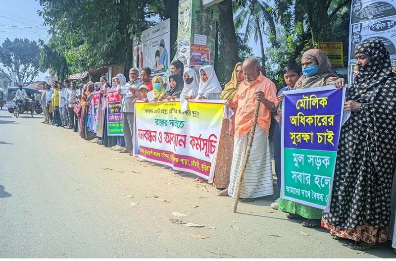 এ রাস্তাটি বন্ধের প্রতিবাদে আজ রোববার (২৪ নভেম্বর) ১২ টার দিকে মানববন্ধন করেন অবরুদ্ধ পরিবার। উপজেলা পরিষদের মুলফটকের রৌমারী-ঢাকা মহাসড়কে এ মানববন্ধন কর্মসূচি অনুষ্ঠিত। এসময় এলাকার লোকজন তাদের দুর্ভোগের বর্ণনা দেন।