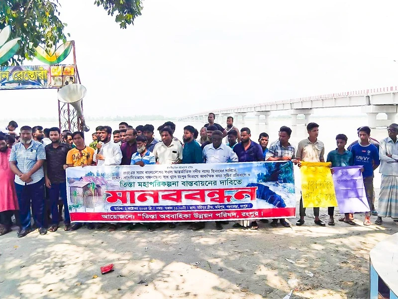 গঙ্গাচড়ায় তিস্তা মহাপরিকল্পনা বাস্তবায়নের দাবিতে মানববন্ধন