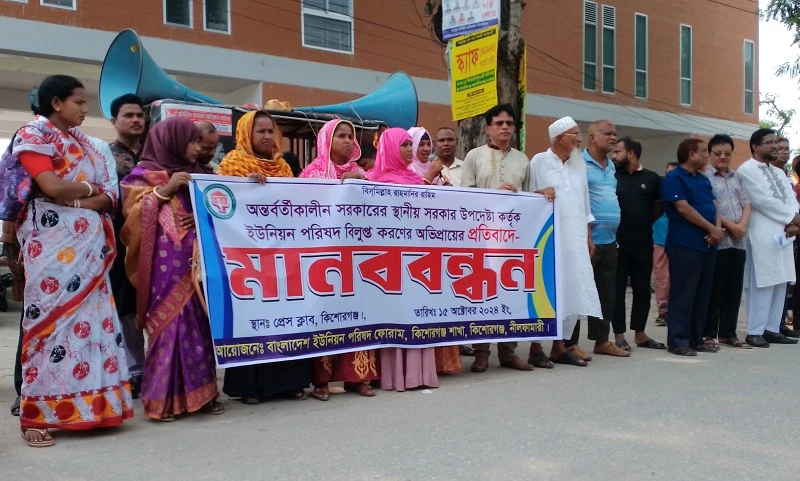 কিশোরগঞ্জে ইউনিয়ন পরিষদ বিলুপ্তকরণের অভিপ্রায়ের প্রতিবাদে মানববন্ধন ও স্মারকলিপি প্রদান