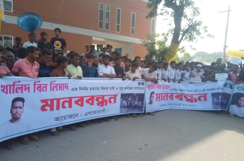 কিশোরগঞ্জে কলেজ ছাত্র লিসাদ হত্যার বিচারের দাবীতে মানববন্ধন