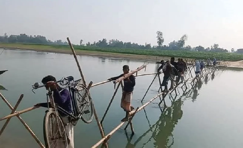 পলাশবাড়ীতে ৫ গ্রামের মানুষের একমাত্র ভরসা বাঁশের সাঁকো