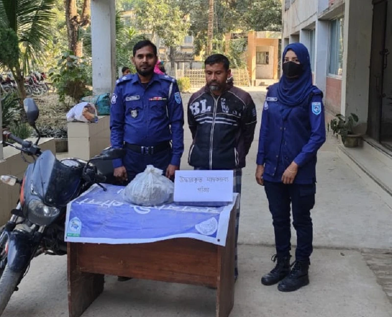 কুড়িগ্রামের ফুলবাড়ীতে পুলিশ অভিযান চালিয়ে আড়াই কেজি গাঁজাসহ এক মাদক চোরাকারবারিকে গ্রেফতার করেছে ফুলবাড়ী থানা পুলিশ। বৃহস্পতিবার সকালে এস আই রাকিবের নেতৃত্বে উপজেলার নাওডাঙ্গা ইউনিয়নের গোড়ক মন্ডল এলাকার হাসেন আলীর(৪২) বাড়িতে তল্লাশি করে মোটর সাইকেলের ট্যাংকের ভিতর বিশেষ কায়দায় রাখা অবস্থায় ২কেজি ৫শ গ্রাম গাঁজা, ১টি ১৫০সিসি পালসার মোটরসাইকেলসহ তাকে হাতেনাতে আটক করা হয়। আটক মাদক চোরাকারবারি হাসেন আলী উপজেলার নাওডাঙ্গা ইউনিয়নের গোড়া মন্ডল বাঘমারা গ্রামের মৃত আব্দুল জব্বার আলীর ছেলে।