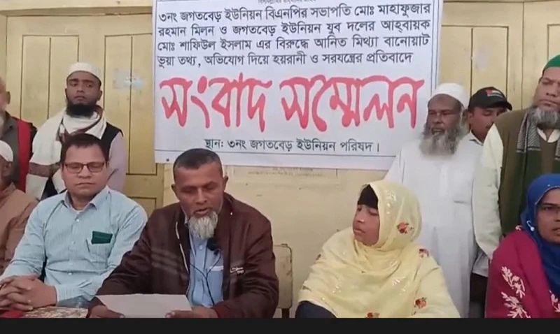 আজ সোমবার দুপুরে পাটগ্রাম উপজেলার জগতবের ইউনিয়ন পরিষদ মাঠে অনুষ্ঠিত সংবাদ সম্মেলনে লিখিত বক্তব্যে জগতবেড় ইউনিয়নের ৪,৫ ও ৬ নং ওয়ার্ড সংরক্ষিত মহিলা সদস্য ও জাতীয়তাবাদী মহিলা দলের সভানেত্রী মোছাঃ শাহিনা পারভীন এর পক্ষে তার স্বামী আছমত আলী বলেন,জগতবেড় ইউপি সদস্য আসাদুজ্জামান মানিক। ইউনিয়ন বিএনপি'র সভাপতি মাহফুজার রহমান মিলন ও যুবদলের আহবায়ক মোঃ সাফিউল ইসলাম এর বিরুদ্ধে কম্বল লুট ও চাঁদাবাজির দাবিতে ইউপি সদস্যদের মারধর ও হামলা হয়েছে বলে সংবাদ সম্মেলন করে যা সম্পূর্ণরূপে মিথ্যা, বানোয়াট ও ভিত্তিহীন।