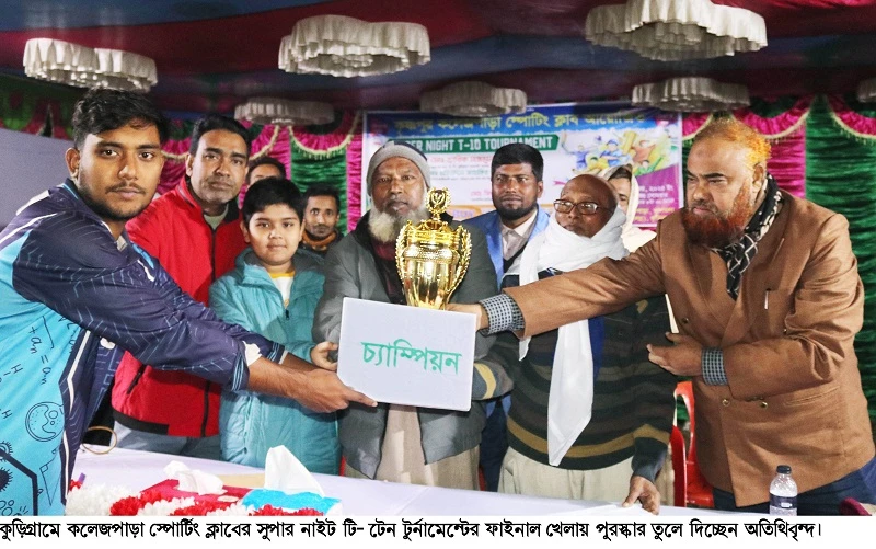 কুড়িগ্রামে সুপার নাইট টি-টেন ক্রিকেট টুর্নামেন্টের ফাইনাল খেলা ও পুরস্কার বিতরণ অনুষ্ঠিত হয়েছে। গতকাল (৩০ ডিসেম্বর) সোমবার রাত সাড়ে ৯টায় সদর উপজেলার কৃষ্ণপুর কলেজপাড়া স্পোর্টিং ক্লাবের আয়োজনে ঐতিহ্যবাহী গাছবাড়ী মাঠে এ টুর্নামেন্ট অনুষ্ঠিত হয়।