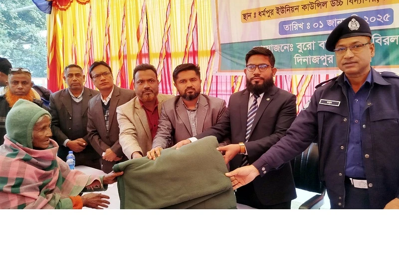 বিরল উপজেলার ১০নং রাণীপুকুর ইউনিয়নের ধর্মপুর ইউনিয়ন কাউন্সিল উচ্চ বিদ্যালয়ের মাঠে বুরো বাংলাদেশ বিরল শাখার আয়োজনে গরীব-দুঃখীদের মাঝে শীতবস্ত্র বিতরণ করা হয়েছে।