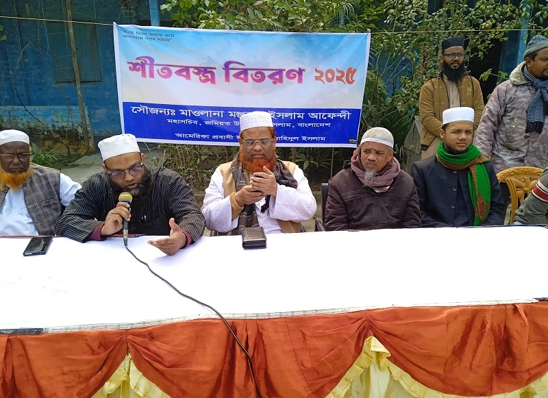 নীলফামারীর ডোমার উপজেলার ৯নং সোনারায় ইউনিয়নের অসহায় দুঃস্থ এবং শীতার্ত মানুষের মাঝে কম্বল বিতরণ ও দোয়া মাহফিল অনুষ্ঠানে উপস্থিত ছিলেন জমিয়তে উলামায়ে ইসলাম বাংলাদেশের মহাসচিব মাওলানা মঞ্জরুল ইসলাম আফেন্দি।
