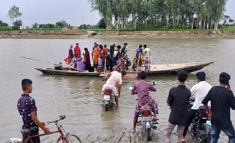 ঘোড়াঘাটে ঝুঁকিপূর্ণ নৌপথে পারাপার