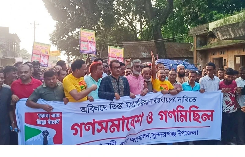তিস্তা মহাপরিকল্পনা বাস্তবায়নে সুন্দরগঞ্জে গণসমাবেশ ও গণমিছিল