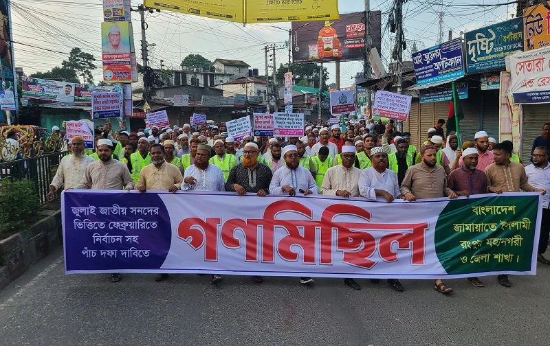 জুলাই সনদের ভিত্তিতে নির্বাচন সহ ৫ দফা দাবিতে জামায়াতের গণমিছিল