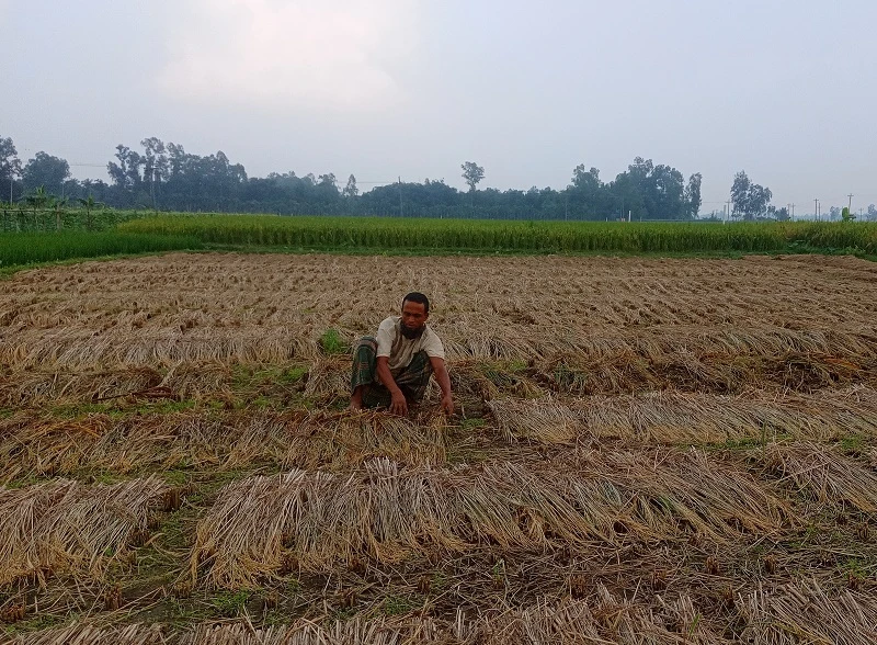 পীরগঞ্জের মাঠে মাঠে দুলছে পাকা ধান "গোখাদ্য যোগান দিচ্ছে নতুন এই খড়"