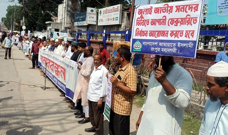 গণভোট ও পিয়ার পদ্ধতিতে দাবিতে রংপুরে জামায়াতের মানববন্ধন