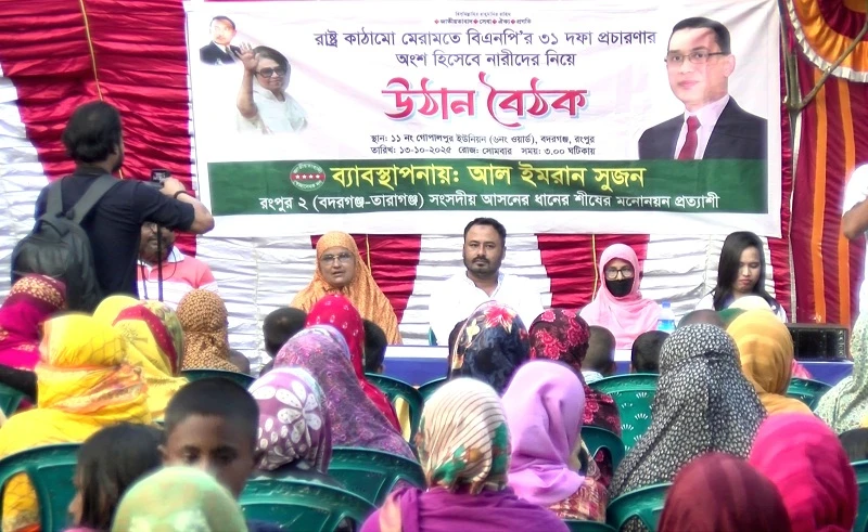 বিএনপির ভারপ্রাপ্ত চেয়ারম্যান তারেক রহমান ঘোষিত রাষ্ট্র কাঠামো মেরামতের ৩১ দফা কর্মসূচি প্রচারে মাঠে নেমেছে রংপুর জেলা স্বেচ্ছাসেবক দলের আহ্বায়ক ও সাবেক ছাত্রনেতা আল ইমরান সুজন। গতকাল মঙ্গলবার সকালে বদরগঞ্জ পৌরসভা এলাকায় লিফলেট বিতরণ করেন তিনি। এর আগে সোমবার নারীদের নিয়ে উঠান বৈঠক করেন উপজেলার গোপালপুর ইউনিয়নের ৬ নং ওয়ার্ডে। এসময় আল ইমরান সুজন বলেন, বাংলাদেশের প্রথম নারী প্রধানমন্ত্রী ছিলেন দেশনেত্রী বেগম খালেদা জিয়া। তারই জ্যোষ্ঠ সন্তান ও বিএনপি’র ভারপ্রাপ্ত চেয়ারম্যান তারেক রহমান ঘোষিত ৩১ দফায় মা-বোন, কৃষক-শ্রমিক ও খেটে খাওয়া মানুষের উন্নয়নের প্রতিশ্রুতি দেওয়া হয়েছে। বিএনপি ক্ষমতায় আসার পর এসব প্রতিশ্রুতি বাস্তবায়ন করা হবে। এছাড়াও তিনি ব্যক্তিগতভাবে শ্যামপুর এলাকা সহ বদরগঞ্জ তারাগঞ্জের শিক্ষা, সংস্কৃতি, কর্মসংস্থান ও রাস্তাঘাট উন্নয়নে কাজ করার অঙ্গীকার ব্যক্ত করেন। এসময় রংপুর জেলা স্বেচ্ছাসেবক দলের যুগ্ম আহ্বায়ক ফজলে রাব্বী বাবুর সঞ্চালনায় বক্তব্য রাখেন, নারী নেত্রী মেরিনা আক্তার, জান্নাতুল ফেরদৌস, খালেদা বেগম, স্থানীয় মাহমুদুন্নবী ভুট্টু, জেলা স্বেচ্ছাসেবক দলের সদস্য শাহজাহান, বেলাল হোসেন, বদরগঞ্জ উপজেলা স্বেচ্ছাসেবক দলের যুগ্ম আহ্বায়ক আরিফুল ইসলাম মঙ্গা, স্বেচ্ছাসেবক দল নেতা রানা ইসলাম ও সম্রাট উপস্থিত ছিলেন। বক্তারা বলেন, রংপুর-২ (বদরগঞ্জ ও তারাগঞ্জ) আসনে বিএনপির মনোনয়ন প্রত্যাশী জেলা স্বেচ্ছাসেবক দলের আহ্বায়ক আল ইমরান সুজন ছাত্র রাজনীতির মাধ্যমে আজ জননেতায় রূপান্তরিত হয়েছেন। তিনি দু:সময়ে নেতাকর্মীদের সঙ্গে রাজপথে ছিলেন। ফ্যাসিবাদী সরকারের হামলা মামলা ও নির্যাতনের শিকার হয়েছেন। তারা আশা প্রকাশ করেন, আগামী নির্বাচনে তিনি মনোনয়ন পেয়ে ধানের শীষ প্রতীকে প্রতিদ্বন্দ্বিতা করবেন। এসময় বিএনপি’র প্রতিষ্ঠাতা শহীদ রাষ্ট্রপতি জিয়াউর রহমানের রুহের মাগফেরাত কামনাসহ সাবেক প্রধানমন্ত্রী বেগম খালেদা জিয়া ও দলের ভারপ্রাপ্ত চেয়ারম্যান তারেক রহমানের সুস্থতা ও দীর্ঘায়ু কামনা করে দোয়া করা হয়। অনুষ্ঠানে রংপুর জেলা বিএনপির সদ্য প্রয়াত সদস্য সচিব আনিসুর রহমান লাকুর স্মৃতিচারণ ও দোয়া করা হয়। নারী উঠান বৈঠকে বিএনপি, স্বেচ্ছাসেবক দল, যুবদল ছাত্রদল নেতাকর্মীসহ শ্যামপুর ও গোপালপুের বিভিন্ন এলাকার কয়েক শতাধিক নারী অংশগ্রহণ করেন।