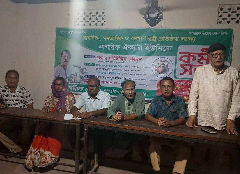 কল্যাণ রাষ্ট্রের শপথ নিন, নাগরিক ঐক্যে যোগ দিন এ শ্লোগানে মানবিক, গণতান্ত্রিক ও কল্যাণ রাষ্ট্র প্রতিষ্ঠার লক্ষ্যে নাগরিক ঐক্য'র রংপুরের গঙ্গাচড়া উপজেলার বেতগাড়ী ইউনিয়ন কর্মী সভা অনুষ্ঠিত হয়েছে।