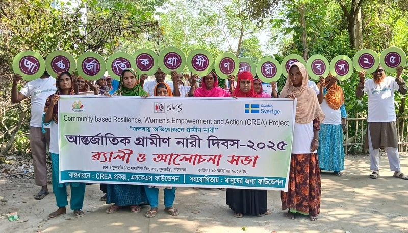 কমিউনিটি ভিত্তিক জলবায়ু সহনশীলতা ও নারীর ক্ষমতায়ন কর্মসূচি (সিআরইএ) প্রকল্পের আওতায় গাইবান্ধার ফুলছড়ি উপজেলার চরাঞ্চলীয় ফুলছড়ি ইউনিয়নে আন্তর্জাতিক গ্রামীণ নারী দিবস ২০২৫ পালিত হয়েছে। বুধবার (১৫ অক্টোবর) সকালে ফুলছড়ি নিম্ন মাধ্যমিক বিদ্যালয় চত্ত্বরে দিবসটি উপলক্ষে বর্ণাঢ্য র্যালী ও আলোচনা সভা অনুষ্ঠিত হয়। এতে চর এলাকার কিশোর-কিশোরী, নারী-পুরুষ ও বিভিন্ন শ্রেণি পেশার মানুষ বিভিন্ন সচেতনতা মূলক বার্তা সম্বলিত প্লে-কার্ড, ফেস্টুন, ব্যানার হাতে র্যালীতে অংশগ্রহণ করেন। র্যালী শেষে ফুলছড়ি নিম্ন মাধ্যমিক বিদ্যালয়ের হল রুমে আলোচনা সভা অনুষ্ঠিত হয়। ফুলছড়ি ইউনিয়ন ক্লাইমেট একশন গ্রুপের সদস্য আমিতন বেগমের সভাপতিত্বে ও সিআরইএ প্রকল্প সমন্বয়কারী লাভলী খাতুন এর পরিচালনায় অনুষ্ঠানে দিবসটির এবারের প্রতিপাদ্য বিষয় ‘জলবায়ু অভিযোজনে গ্রামীণ নারী’ তুলে ধরে বক্তব্য রাখেন, উপজেলা জেন্ডার সমতা ও জলবায়ু জোটের (জিকা) সদস্য, সহকারী শিক্ষক রওশন আলী, ফুলছড়ি নিম্ন মাধ্যমিক বিদ্যালয়ের সহকারী শিক্ষক আব্দুল ওয়াহেদ, নারী দলের সভা প্রধান চন্দ্রভানু, হামিদা বেগম, শাহিনুর বেগম। এতে সুশীল সমাজ প্রতিনিধি, গন্যমান্য ব্যক্তিবর্গসহ গণমাধ্যম ব্যক্তিরা উপস্থিত ছিলেন। একইভাবে এদিন ফজলুপুর ইউনিয়নে চন্দনস্বরেও দিবসটি উদযাপিত হয়। এতে সভাপতিত্ব করেন, ফজলুপুর ইউপি’র প্যানেল চেয়ারম্যান মুক্তার হোসেন।