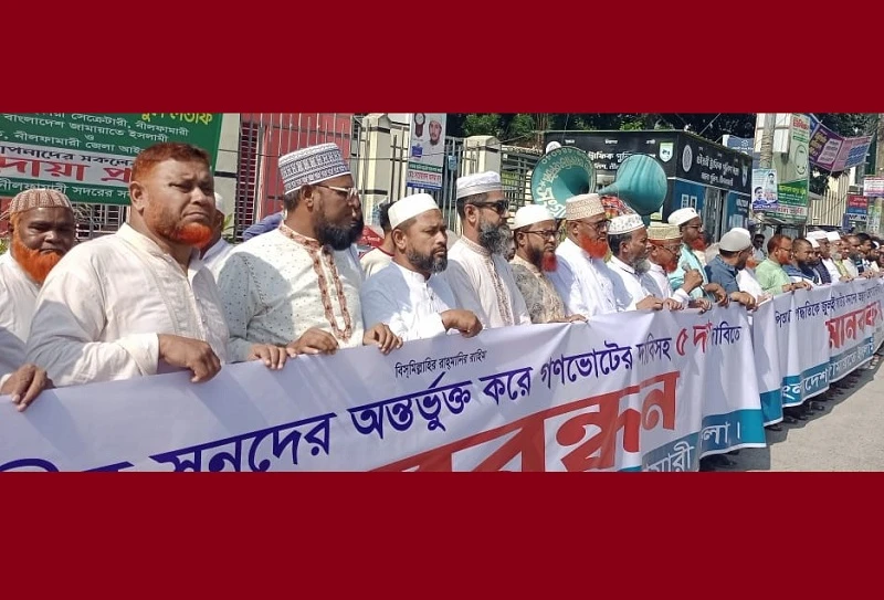 পিআর পদ্ধতিতে জাতীয় নির্বাচনের দাবীতে নীলফামারীতে জামায়াতের মানববন্ধন