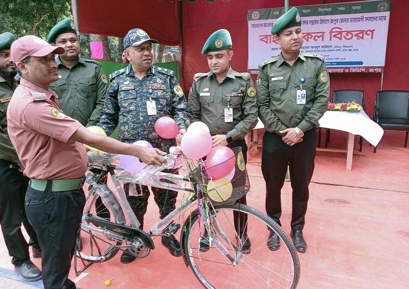 রংপুর আনসার গ্রাম প্রতিরক্ষা বাহিনীর উপজেলা, ইউনয়িন, আনসার কমান্ডার, ইউনিয়ন ভিডিপি দলপতিদের কার্যক্রম গতিশীলতা আনায়নের লক্ষ্যে বাইসাইকেল বিতরণ করা হয়েছে। ১৫ অক্টোবর (বুধবার) রংপুর নগরীর মাহিগঞ্জ আনসার-ভিডিপি প্রশিক্ষণ কেন্দ্রে বাংলাদেশ আনসার গ্রাম প্রতিরক্ষা বাহিনীর উদ্যোগে রংপুর জেলা ভাতাভোগী সদস্যদের মাঝে আনুষ্ঠানিকভাবে ৭৩টি বাইসাইকেল বিতরণ করা হয়।