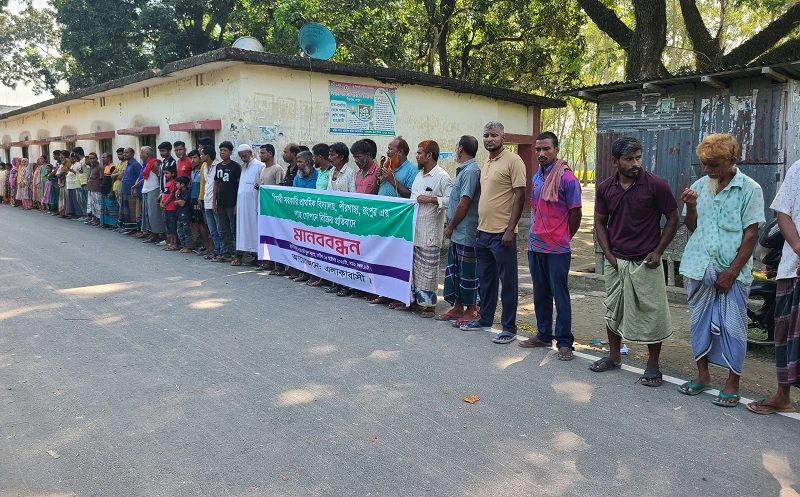 বিদ্যালয়ের বৃক্ষ নিধন বন্ধ ও প্রধান শিক্ষকের অপসারণসহ ৬ দফা দাবিতে মানববন্ধন