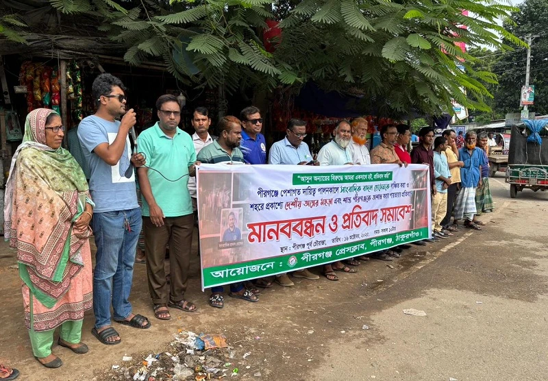 পীরগঞ্জে সাংবাদিক লাঞ্ছনার প্রতিবাদে মানববন্ধন