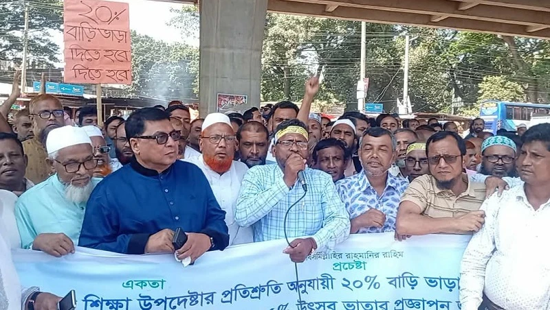 বেসরকারি শিক্ষা প্রতিষ্ঠানে কর্মরত এমপিওভুক্ত শিক্ষক-কর্মচারীদের বাড়িভাড়া ২০%, চিকিৎসা ভাতা এবং উৎসব ভাতা ৭৫% প্রদানের দাবিতে গাইবান্ধার পলাশবাড়ীতে মানববন্ধন শেষে র্যালী অনুষ্ঠিত হয়েছে।