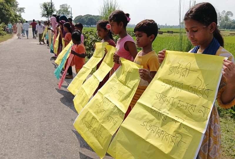 ব্যাটারির সীসা' রাসায়নিক বর্জ্যে ভয়াবহ দূষণ' কারখানা বন্ধের দাবিতে সড়ক ব্লক করে মানববন্ধন