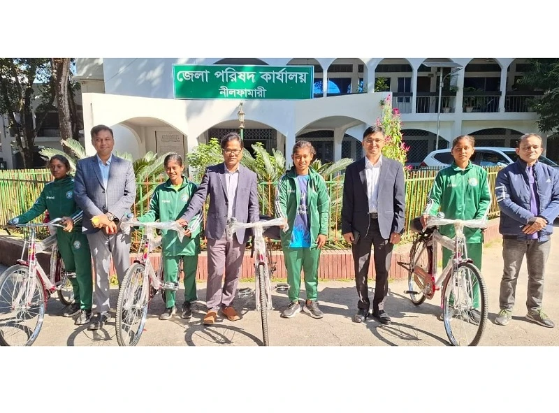 নীলফামারীতে চার নারী ফুটবলারদের সাইকেল বিতরণ
