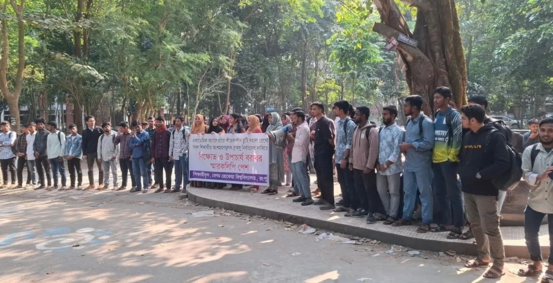 গত রবিবার (২৩ নভেম্বর) দুপুর ১টা ৩০মিনিটে বিশ্ববিদ্যালয়ের মিডিয়া চত্ত্বরে সাধারণ শিক্ষার্থী ব্যানারে এ কর্মসূচি পালিন হয়৷ এক পর্যায়ে শিক্ষার্থীরা উপাচার্য দপ্তরের সামনে অবস্থান নেন। এসময় শিক্ষার্থীরা, ‘ছুটি নিয়ে তালবাহানা চলবে না চলবে না', ‘ ডিসেম্বরে ছুটি, দিতে হবে দিতে হব', ‘আমাদের দাবি আমাদের দাবি, মানতে হবে মানতে হবে' সহ নানা স্লোগান দিতে থাকে।