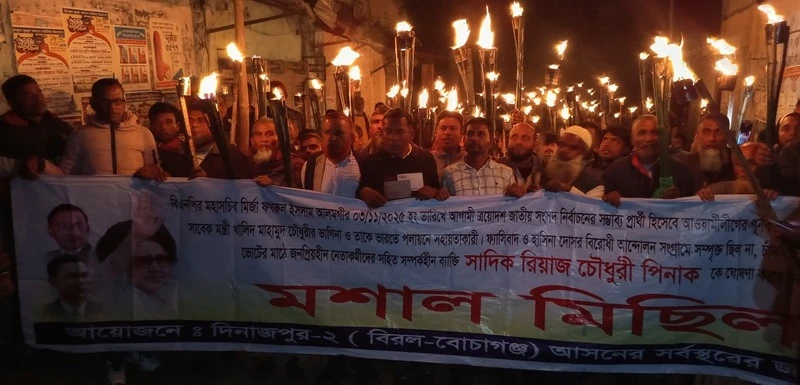 দিনাজপুর-২ আসনে বিএনপি’র মনোনয়ন বঞ্চিতদের পক্ষে এবং ঘোষিত প্রার্থী পরিবর্তনের দাবিতে মশাল মিছিল অনুষ্ঠিত