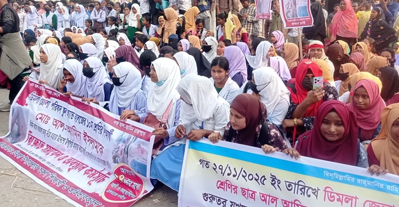 নীলফামারীর ডিমলায় জেলা পরিষদ স্কুল অ্যান্ড কলেজের দশম শ্রেনীর ছাত্র আল আমিনের ওপর বর্বরোচিত হামলার তীব্র নিন্দা ও দোষীদের দ্রুত গ্রেফতারের দাবিতে সকল শিক্ষার্থী ও অভিভাবকবৃন্দ বিক্ষোভ সমাবশ ও অবস্থান কর্মসূচী করেছেন । রবিবার (৩০ নভেম্বর) দুপুর দুইটায় উপপজেলা সকল শিক্ষার্থী ও অভিভাবকবৃন্দ টানা তিনঘন্টা বিক্ষোভ সমাবশ ও অবস্থান কর্মসূচীতে অংশগ্রহন করেন। এসময় সকল শিক্ষার্থী ও অভিভাবকবৃন্দ ডিমলা বিজয় চত্বরে একত্রিত হয়ে দুষ্কৃতকারীদের দ্রুত গ্রেফতার ও কঠোর শাস্তির দাবীতে বিক্ষোভ সমাবশ ও অবস্থান কর্মসূচী করেন। সমাবেশে সকল শিক্ষার্থী ও অভিভাবকবৃন্দ শহরের প্রধান প্রধান সড়ক বিক্ষোভ র্যালী প্রর্দশন শেষে ডিমলা স্মৃতি অম্লান চত্তরে অবস্থান কর্মসূচীতে অংশগ্রহন করেন। এসময় তারা জেলা পরিষদ স্কুল অ্যান্ড কলেজের ছাত্র আল আমিনের ওপর বর্বরোচিত হামলার তীব্র নিন্দা ও দোষীদের দ্রুত গ্রেফতারের দাবি জানান। বিক্ষোভকারীদের অভিযোগ প্রকাশ্যে আলআমিনের উপর হামলার মতো জঘন্য ঘটনায় পুলিশ এখনো কোন পদক্ষেপ নেয়নি। এতে করে সন্ত্রাসীদের তৎপরতার বিস্তার নিয়ে বাড়ছে উদ্বেগ। গত বৃহস্পতিবার (২৭ নভেম্বর) নীলফামারী জেলার ডিমলা উপজেলাধীন "জেলা পরিষদ স্কুল অ্যান্ড কলেজে" এক ভয়াবহ হামলার ঘটনা ঘটেছে। ঐ স্কুলের দশম শ্রেণীর ছাত্র আল আমিনকে একই স্কুলের একাদশ শ্রেণীর ছাত্র নাসিম হোসেন কর্তৃক ছুরিকাঘাতে গুরুতর আহত হয়। স্থানীয় শিক্ষার্থীরা হামলাকারীকে বিদ্যালয়ের অফিস রুমে আটক রাখলে রাব্বি ও সেলিম ইসলাম নামের দুই ব্যক্তি হামলাকারীকে বের করে নিয়ে যায়। শিক্ষার্থীরা দ্রুত আহত আল আমিন ইসলামকে ডিমলা উপজেলা স্বাস্থ্য কমপ্লেক্সে নিয়ে যান। এরপর উন্নত চিকিৎসার জন্য দায়িত্বরত চিকিৎসক তাকে রংপুর মেডিকেল কলেজ হাসপাতালে (রমেক) রেফার করেন। ঐ ঘটনায় আল আমিন ইসলামের ফুসফুস ছিদ্র হয়েছে এবং তার অবস্থা আশঙ্কাজনক। গত রাতে তার অপারেশন সম্পন্ন হয়েছে এবং বর্তমানে তিনি অজ্ঞান অবস্থায় আইসিইউতে চিকিৎসাধীন আছেন। ভুক্তভোগী পক্ষ থেকে থানায় অভিযোগ দায়ের করা হলেও থানা পুলিশ এখনো কোনো আসামির বিরুদ্ধে কার্যকর ব্যবস্থা গ্রহণ করেনি। শিক্ষা প্রতিষ্ঠানে শিক্ষার্থীদের ওপর এ ধরনের ন্যাক্কারজনক হামলায় সকল শিক্ষার্থী, অভিভাবক ও সুশিল সমাজ দুঃখ প্রকাশ করেছেন।