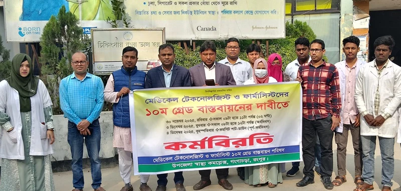 গঙ্গাচড়ায় মেডিকেল টেকনোলজিস্ট ও ফার্মাসিস্টদের কর্মবিরতি পালন