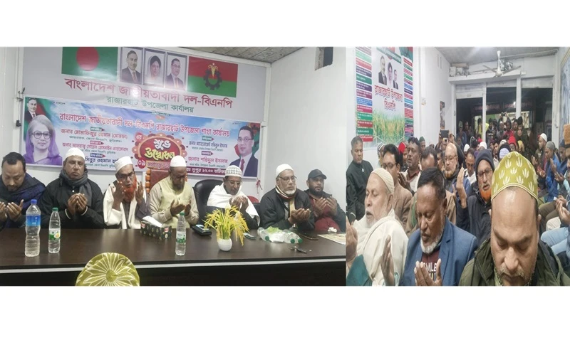 কুড়িগ্রামের রাজারহাট উপজেলা বিএনপিও তার সহযোগী সংগঠনের উদ্যোগে বিএনপির চেয়ারপার্সন ও সাবেক প্রধানমন্ত্রী বেগম খালেদা জিয়ার রোগ মুক্তি ও সুস্থতা কামনায় দোয়া মাহফিল অনুষ্ঠিত হয়েছে।