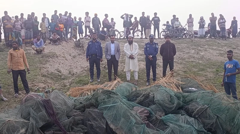 কিশোরগঞ্জে ৫ লাখ টাকার চায়না দুয়ারী জাল পুড়িয়ে ধ্বংস