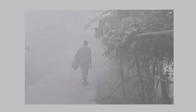 কুয়াশা-হিমেল হাওয়ায় নিঃশব্দ হয়ে পড়েছে দিনাজপুরের জনজীবন