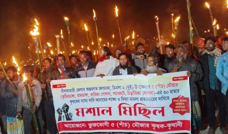 বুড়িতিস্তা জলাধার খননের প্রতিবাদে মশাল মিছিল