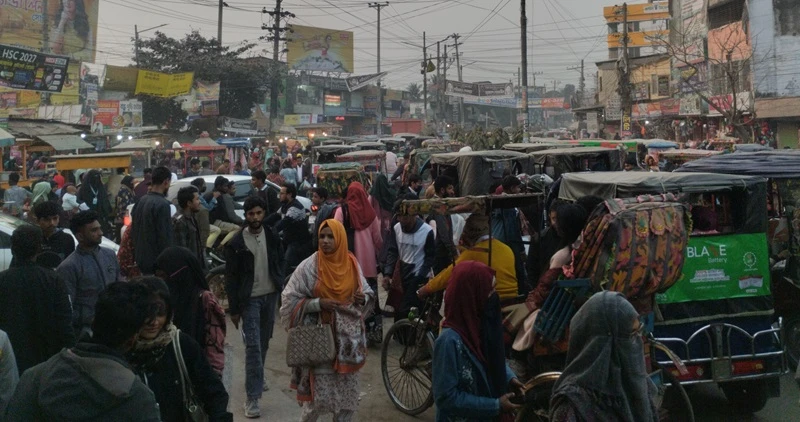 রংপুর নগরীর লালবাগ এলাকায় থমকে আছে সব ধরনের যানবাহন। কোলাহলের ভেতর কয়েক কদম এগোলেই খামারমোড়ে দৃশ্য বদলে যায়। রেললাইন পেরোনোর পর রাস্তা প্রায় ফাঁকা। অথচ লালবাগ মোড়ে যানজটের কারণ কোনো দুর্ঘটনা নয়, যাত্রী ওঠানামার জন্য মাঝরাস্তায় থেমে থাকা যানবাহনই এই সংকীর্ণ সড়কটিকে প্রতিদিন জ্যামের মুখে ঠেলে দিচ্ছে।