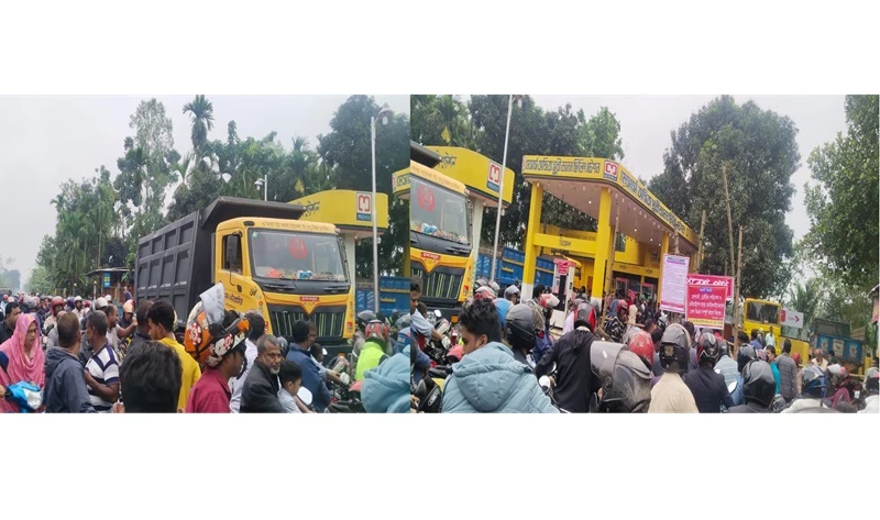 রাজারহাটে পেট্রোল পাম্পে দীর্ঘ লাইন, ব্যাহত জরুরি সেবা ও কৃষিকাজ