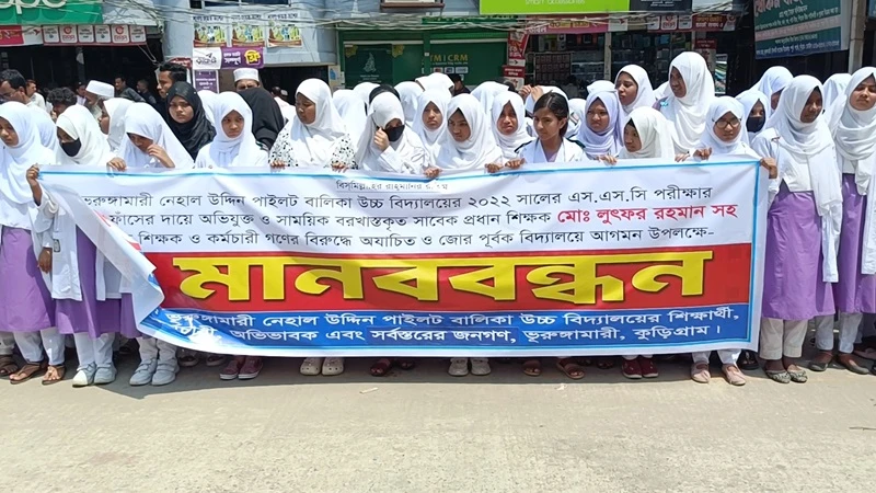 কুড়িগ্রামের ভূরুঙ্গামারীতে এসএসসি পরীক্ষার প্রশ্নপত্র ফাঁসের ঘটনায় অভিযুক্ত শিক্ষকদের পুনরায় বিদ্যালয়ে সংযুক্ত করার প্রতিবাদে মানববন্ধন ও স্মারকলিপি প্রদান করেছেন শিক্ষার্থী ও অভিভাবকরা।