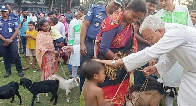 ঘোড়াঘাটে ক্ষুদ্র-নৃগোষ্ঠী পরিবারের মাঝে গবাদিপশু ছাগল বিতরণ করলেন মাননীয় মন্ত্রী