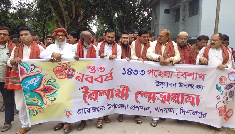 "পুরোনোকে বিদায় জানিয়ে নতুনকে বরণ করার আনন্দে দিনাজপুরের খানসামায় নানা আয়োজনে উৎসবমুখর পরিবেশে পালিত হয়েছে বাংলা নববর্ষ ১৪৩৩। গ্রামবাংলার চিরচেনা ঐতিহ্য, রঙিন শোভাযাত্রা আর লোকজ সংস্কৃতির মেলবন্ধনে দিনটি হয়ে ওঠে প্রাণবন্ত ও আনন্দঘন।
